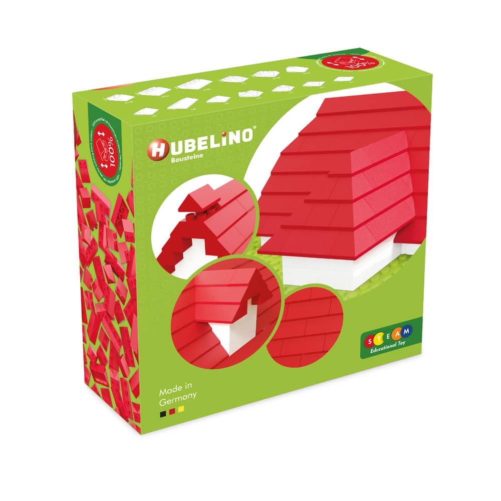 With the 124-Piece Roofing Tile Set by Hubelino, there are no limits to your imagination. Thanks to many exciting special shapes, every house can really be crowned with a suitable roof. The roofing tiles are manufactured exclusively in Germany and are 100% compatible with popular building block systems from other manufacturers for children from 1.5 years of age.
