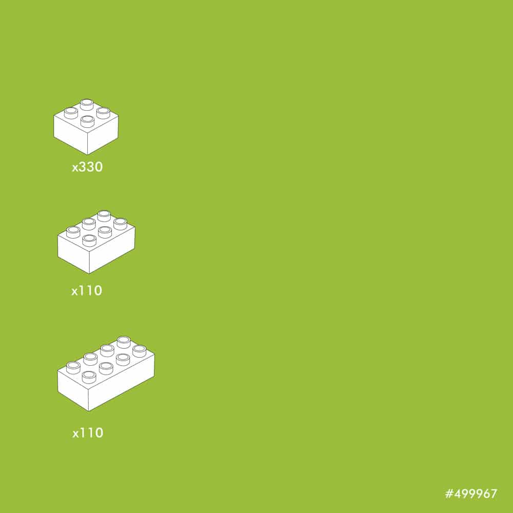 - 550 pieces (330 2×2 building blocks, 110 2×3 building blocks and 110 2×4 building blocks)