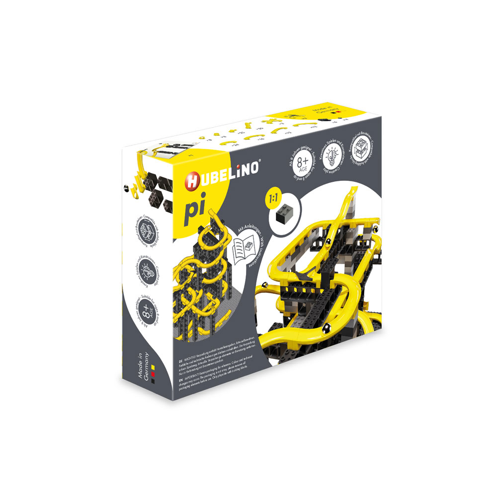 The 141-piece run element set offers a diverse selection of components, including crossings and switches, with which you can create complex marble run constructions. The run elements can be flexibly combined with building blocks from other manufacturers or used to complement and further develop your Hubelino pi marble run.